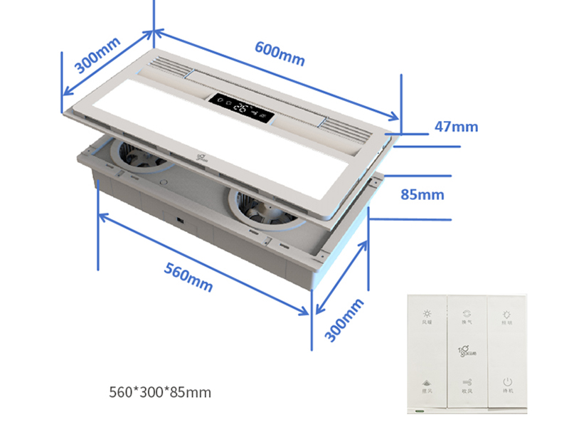 | Fonctions du produit | Éclairage, ventilation, circulation de l'air, disposition de page directionnelle, chauffage, contrôle sans fil, protection de démarrage de 120 minutes, protection de 30 secondes de retard |