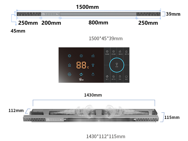 | Caractéristiques du produit | Chauffage rapide, chauffage confortable, baignade à un clic, salle de séchage à un clic, ventilation, vent ionique, direction du vent, éclairage externe (puissance maximale ne dépassant pas 48W) |